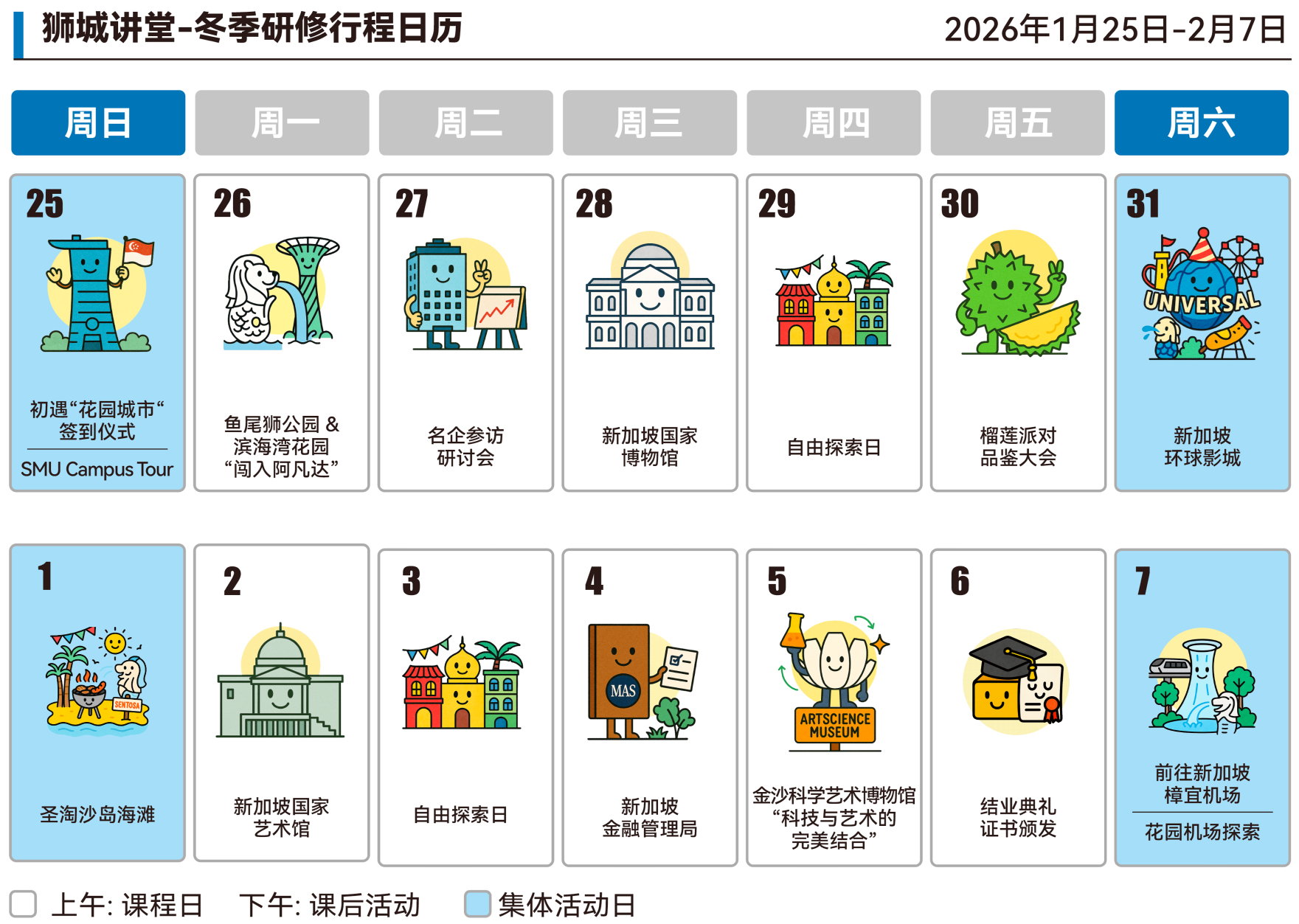 * 开课前一周,将统一通知「新加坡⼊境表」塡写提醒邮件。请按照指导完成相关⼊学及⼊境准备!